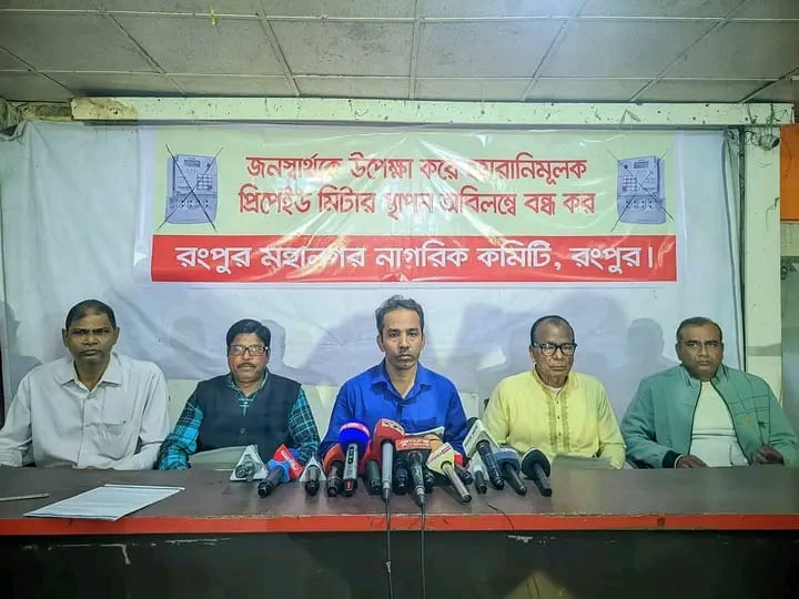 সংবাদ সম্মেলনে লিখিত বক্তব্যে বলা হয়-বিদ্যুৎ বিতরণকারী প্রতিষ্ঠান নর্দান ইলেকট্রিসিটি পাওয়ার কোম্পানী (নেসকো) রংপুর নগরীর বিভিন্ন বাসা-বাড়ী, দোকানপাট, অফিস ও ব্যবসা প্রতিষ্ঠানে প্রিপেইড মিটার সংযোগ কার্যক্রম শুরু করেছে। বিশেষ করে বাসা-বাড়িতে গ্রাহকদের আপত্তি সত্ত্বেও নানা কৌশলে প্রিপেইড মিটার স্থাপনের কাজ অব্যাহত রেখেছে। অনেক ক্ষেত্রে প্রিপেইড মিটার স্থাপনে জবরদস্তির অভিযোগও রয়েছে। ইতিপূর্বে গ্রাহকদের আন্দোলনের মুখে তৎকালীন জেলা প্রশাসক নেসকো কর্তৃপক্ষকে বাধ্যতামূলকভাবে বাসা-বাড়ি প্রিপেইড মিটার স্থাপনের কাজ থেকে বিরত থাকার নির্দেশ দিয়েছিলেন। বাসা-বাড়িতে কোনো গ্রাহক যদি স্বতঃস্ফূর্তভাবে প্রিপেইড মিটার সংযোগ নিতে চায় তবেই সেখানে প্রিপেইড মিটার স্থাপন করা যাবে। এক্ষেত্রে কোনো গ্রাহককে বাধ্য করা যাবে না। কিন্তু বর্তমানে নেসকো কর্তৃপক্ষ সেই নির্দেশনা অমান্য করে গ্রাহকদের আপত্তি স্বত্তেও প্রিপেইড মিটার স্থাপনে নানামুখী তৎপরতায় লিপ্ত রয়েছে।