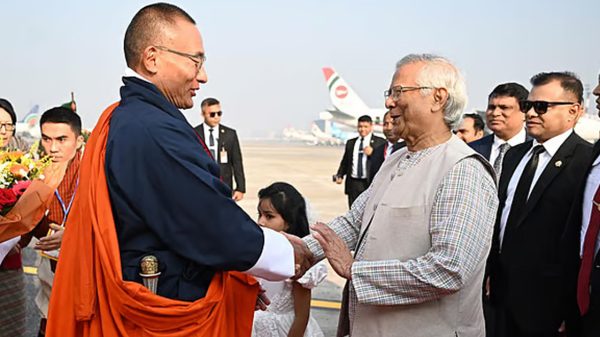 স্বাক্ষর ও নথি বিনিময় অনুষ্ঠানে উপস্থিত ছিলেন প্রধান উপদেষ্টা অধ্যাপক মুহাম্মদ ইউনূস এবং ভুটানের প্রধানমন্ত্রী শেরিং তোবগে।