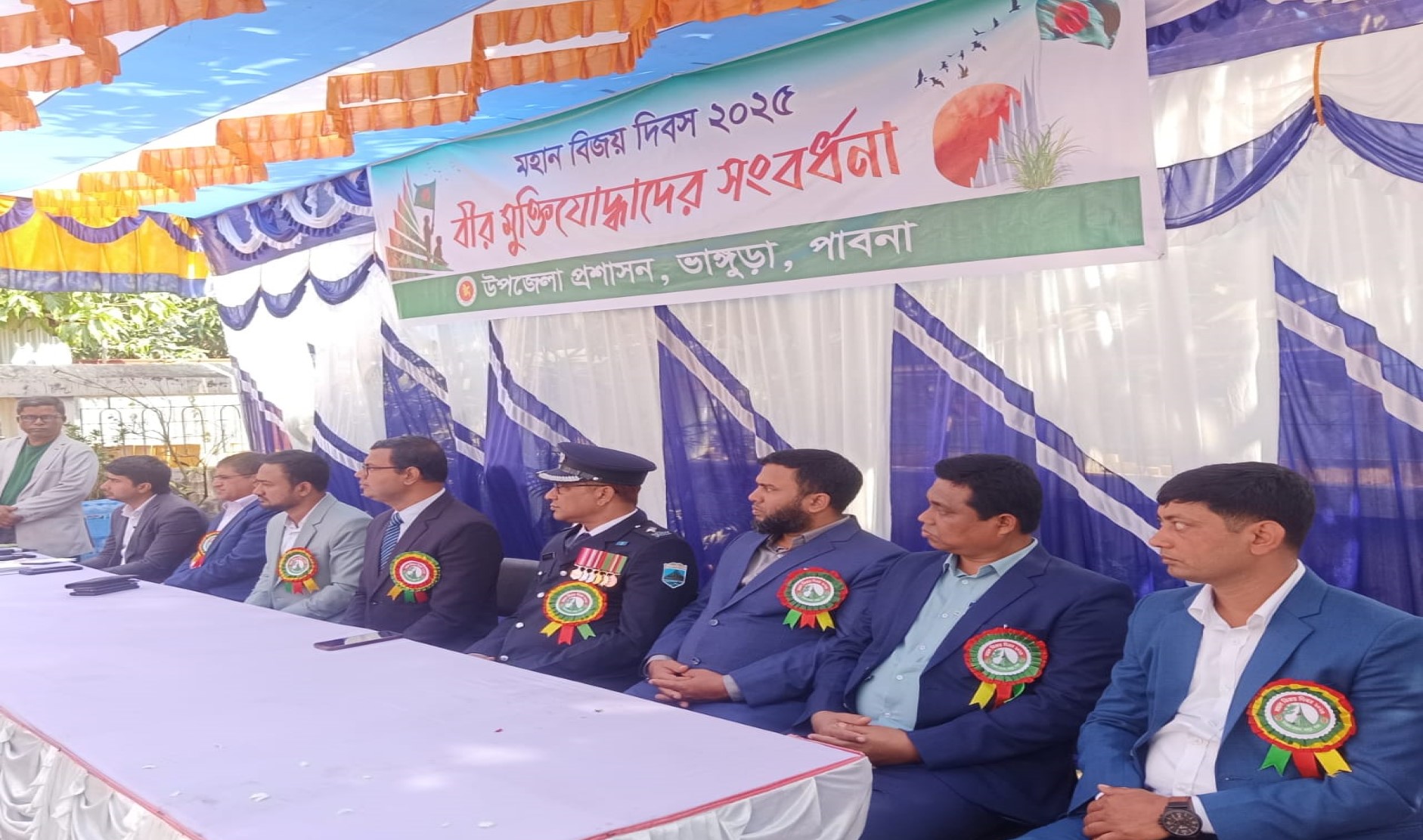 প্রভাষক গিয়াস উদ্দিন সরদার, পাবনা প্রতিনিধি :- পাবনার ভাঙ্গুড়ায় মহান বিজয় দিবস-২০২৫ উপলক্ষে বীর মুক্তিযোদ্ধাদের সংবর্ধনা অনুষ্ঠান অনুষ্ঠিত হয়েছে। মুক্তিযোদ্ধা কমান্ড এডহক কমিটির উদ্যোগে আয়োজিত এ অনুষ্ঠানে সার্বিক সহযোগিতা প্রদান করে পাবনার ভাঙ্গুড়া উপজেলা প্রশাসন।