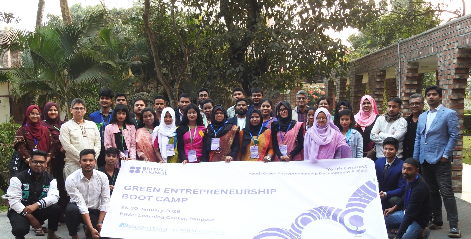 শিল্পী আক্তার, রংপুর ব্যুরো :-  ডেমক্রেসিওয়াচ এবং SERAC-Bangladesh-এর যৌথ উদ্যোগে এবং ব্রিটিশ কাউন্সিল-এর অর্থায়নে গত ২৫ থেকে ৩০ জানুয়ারি ২০২৬ পর্যন্ত রংপুর ব্র্যাক লার্নিং সেন্টারে মনোরম পরিবেশে সফলভাবে আয়োজন করা হয় Green Entrepreneurship Boot Camp 2026। ৫ দিনব্যাপী এই বুটক্যাম্পটি Youth Connect;Youth Green Entrepreneurship Development Project–এর আওতায় বাস্তবায়িত হচ্ছে। বুটক্যাম্পে রংপুর বিভাগের রংপুর ও দিনাজপুর জেলার বিভিন্ন উপজেলা থেকে আগত ৩০ জন তরুণ সবুজ উদ্যোক্তা ১৫টি সবুজ উদ্যোগ নিয়ে অংশগ্রহণ করেন।