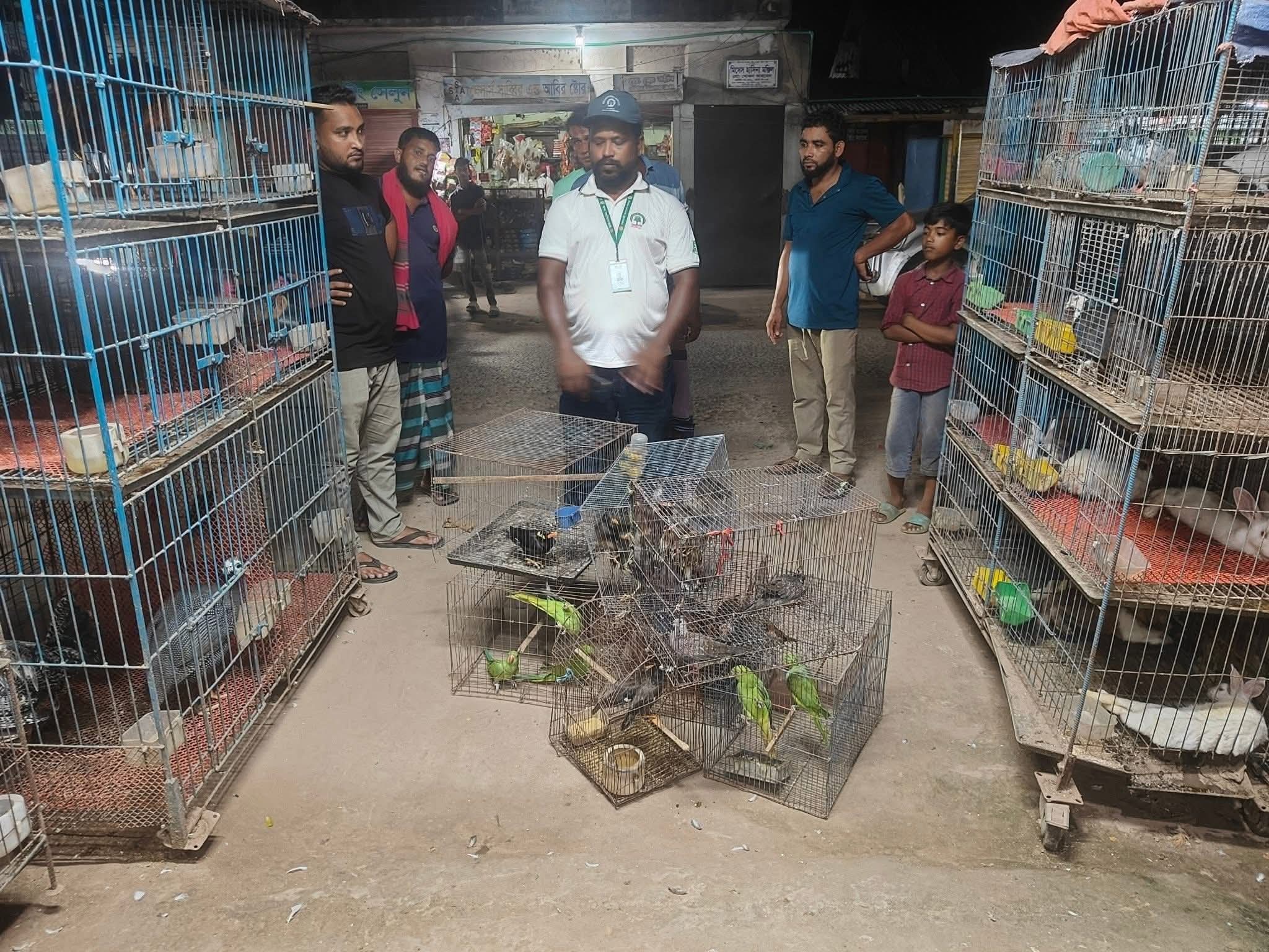 বন্যপ্রাণী মধ্যে ২৮ টি সবুজ টিয়া পাখি, ১২ টি তোতা, ১ টি ময়না, ২ টি হিরামন টিয়া, ৪ টি কচ্ছপ, ৪ টি কালিম এবং ৯ টি ঘুঘু পাখি ছিলোি।